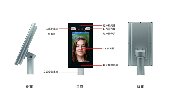 7寸人脸双目识别一体机是基于深度学习的人脸前端识别比对一体机,具有非常灵活的特性,采用工业级的Linux平台,内置神经网络运算处理器,全高清的WDR彩色摄像头轻松应对背光暗光阴阳脸环境,本地可存储50000库,可以可靠的脱机人像识别、比对、活体判断为一体,600*1024的全彩高清屏带来更细腻的显示效果。本设备尾线接口丰富,配置灵活,可选配包含4G,WIFI,广告播放,复杂二维码识别,内置刷卡等附加功能。